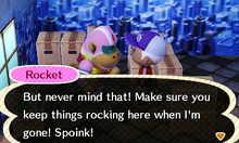 Villagers will sometimes reveal in dialogue that they are thinking most moving away, and specify the date they plan to exercise then. The player may wish them well, or attempt to convince them to stay. Other animals may likewise sometimes reveal that a villager is thinking almost leaving.